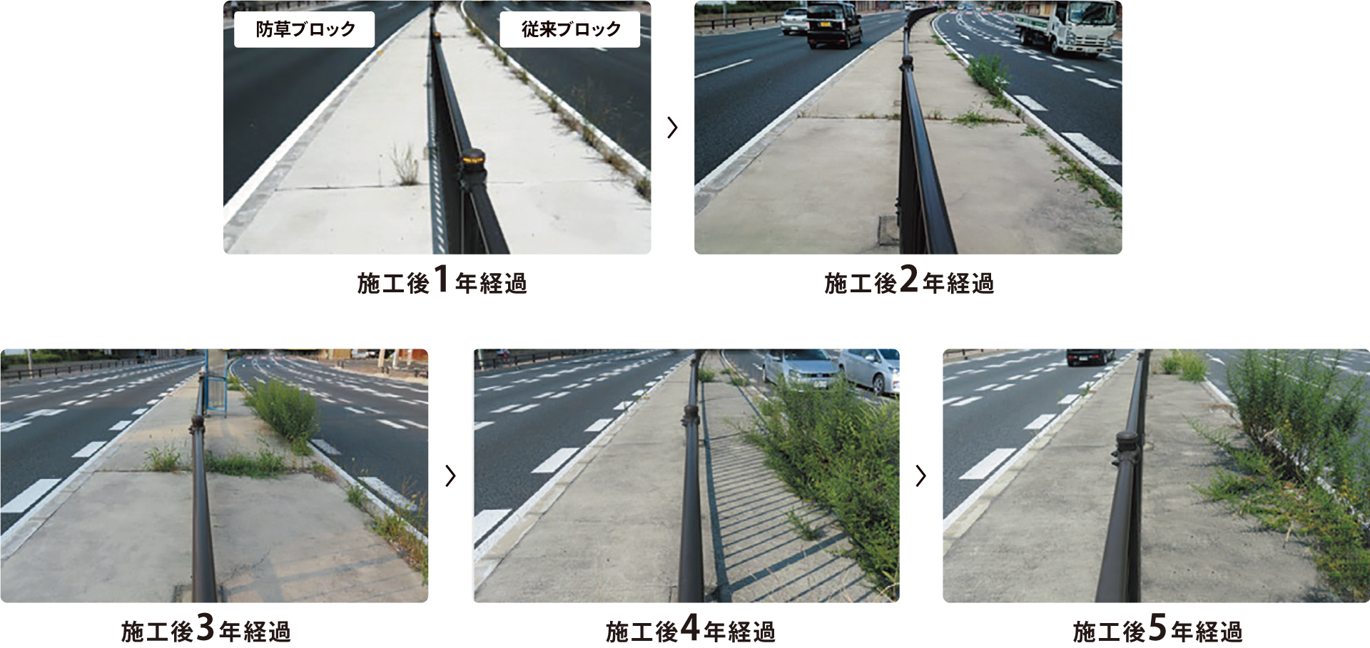 防草ブロックを使用した車道は、長期間雑草の繁殖が抑制されます この持続的な効果により、防草ブロック施工後の雑草メンテナンスが大幅に軽減されます。