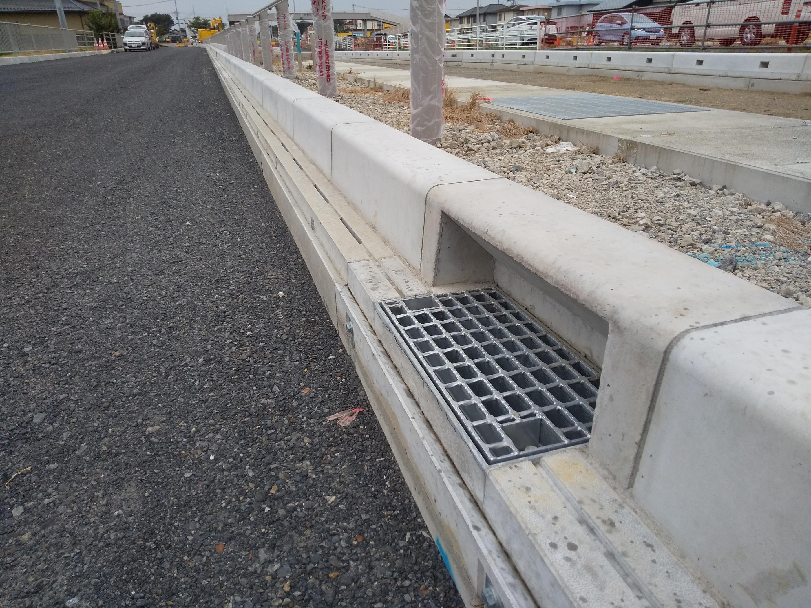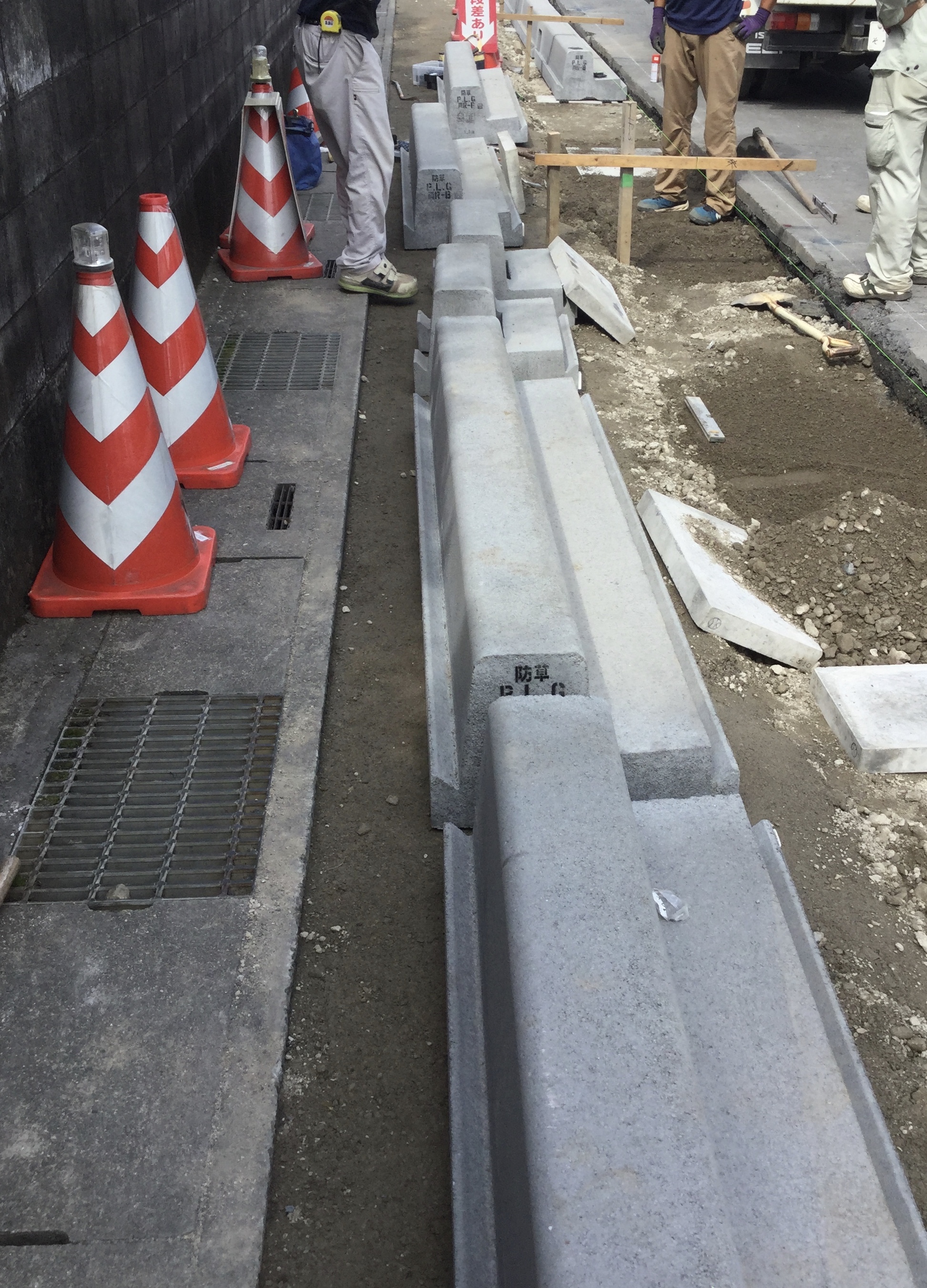 いつもですと、歩車道境界ブロックとハリコンの隙間から